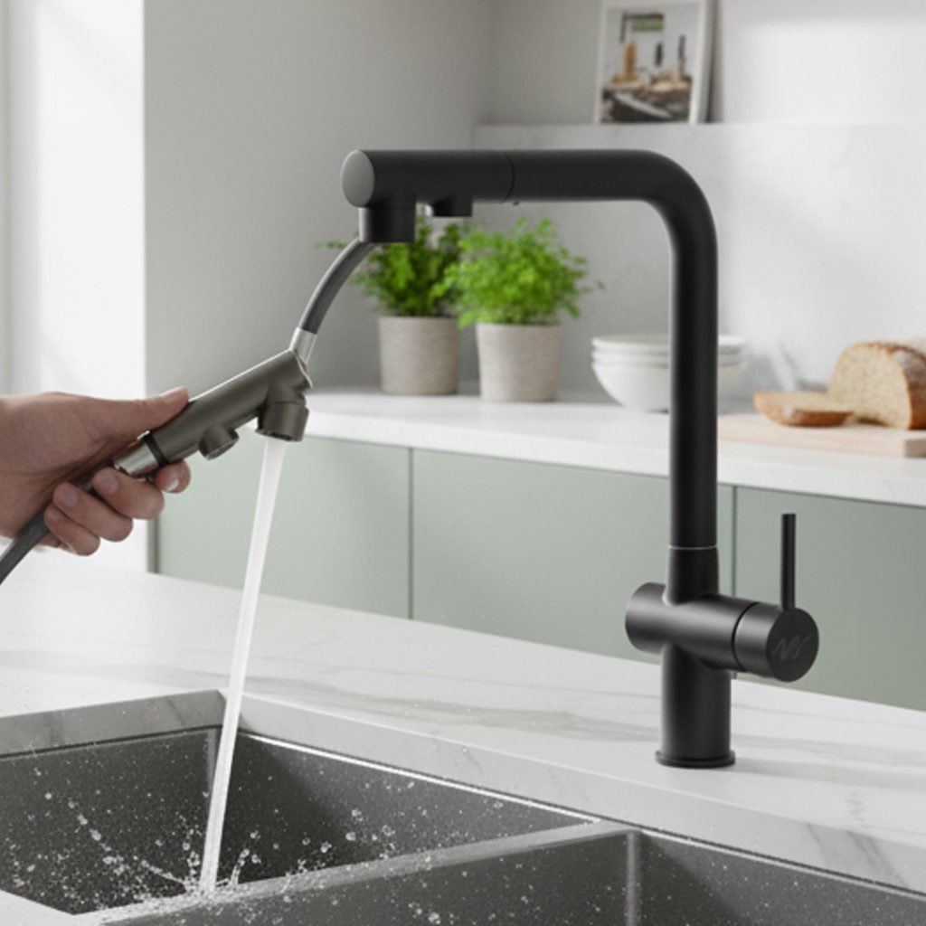 In een actieve keuken is flexibiliteit alles. Of u nu een gepassioneerde thuiskok bent die grote pannen vult, of iemand die waarde hecht aan een smetteloos schone spoelbak; de juiste kraan maakt het verschil. De W 3-in-1 Pull, het paradepaardje uit de Wieland W-series, brengt twee werelden samen: het enorme bereik van een uittrekbare kop en de ongekende zuiverheid van geïntegreerde 5-staps filtratie.